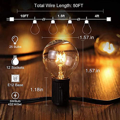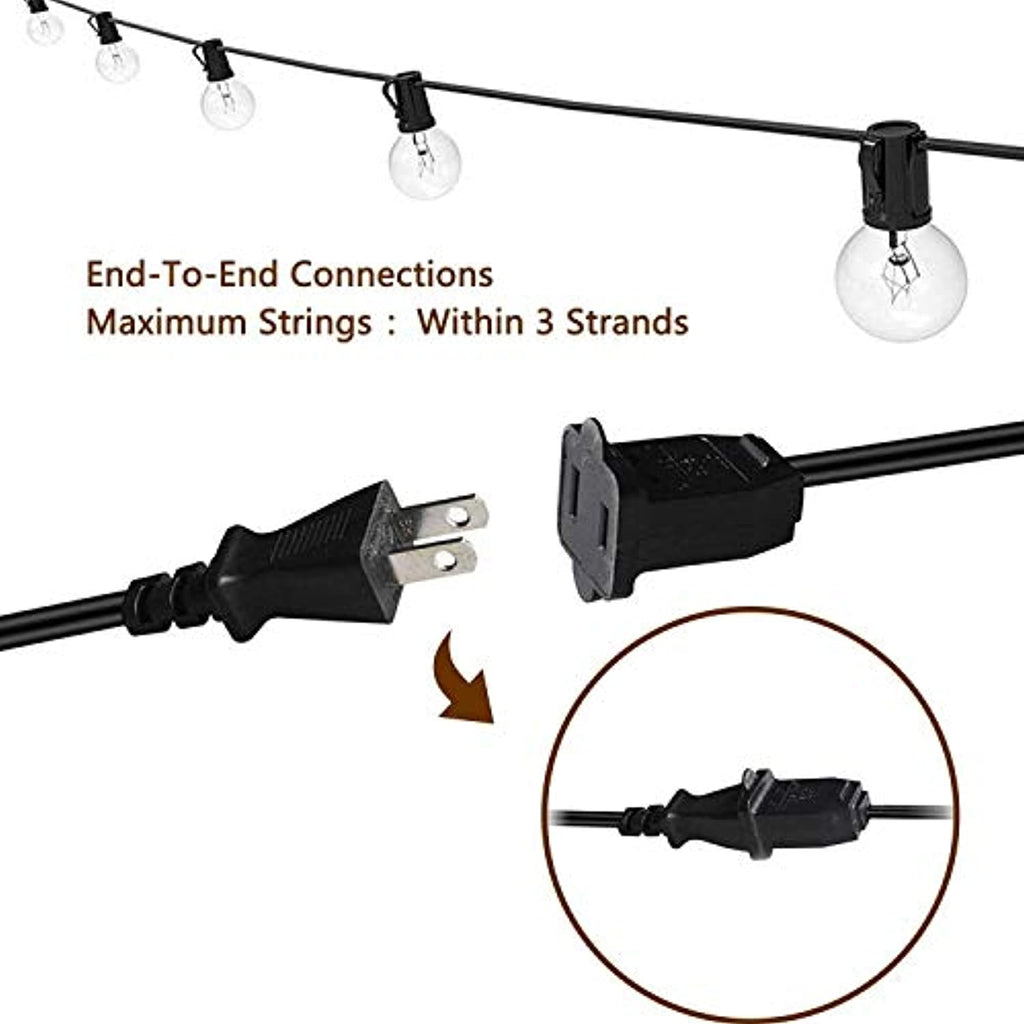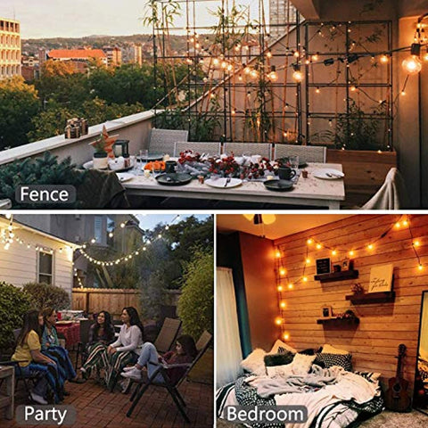 • 🏑 Practical & Durable - Bomcosy outdoor string lights have 50Ft cable with 25 sockets of E12, 25 pcs incandescent bulbs are included. They can end to end connectable up to 3 strands, feel free to customize your arrangements. Sockets will fit any bulb with a compatible E12 base (for example: can be replaced with LED bulbs). Dimmable.