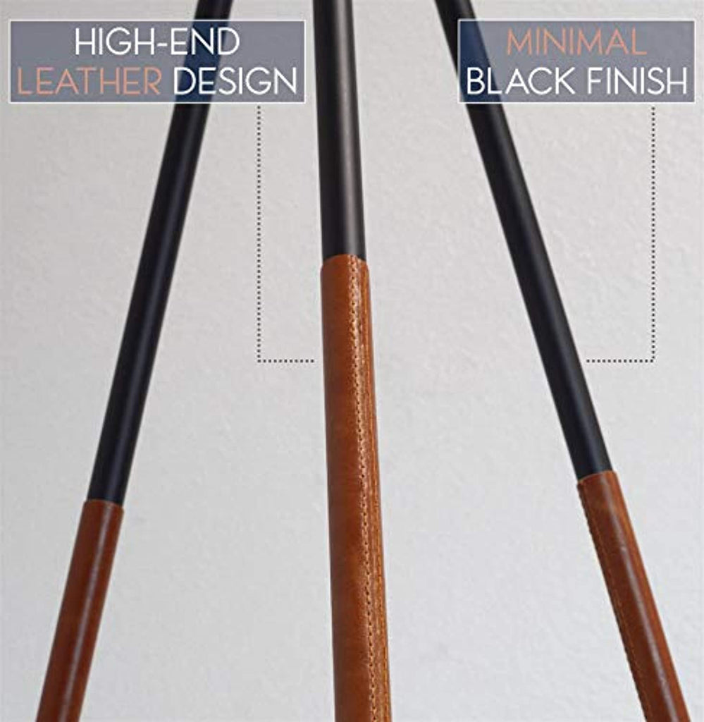 Kira Home Sulis 58" Modern Industrial Tripod LED Floor Lamp + 9W Bulb (Energy Efficient/Eco-Friendly), Leather Accent Legs, Satellite Style Shade, Black Finish