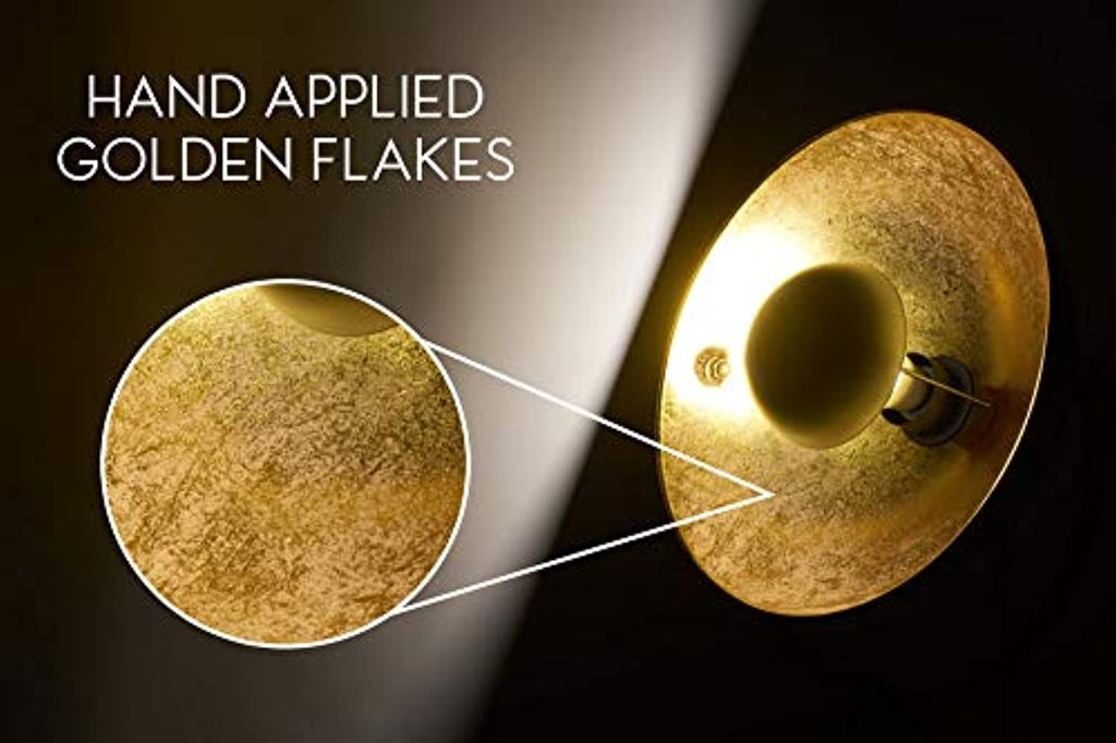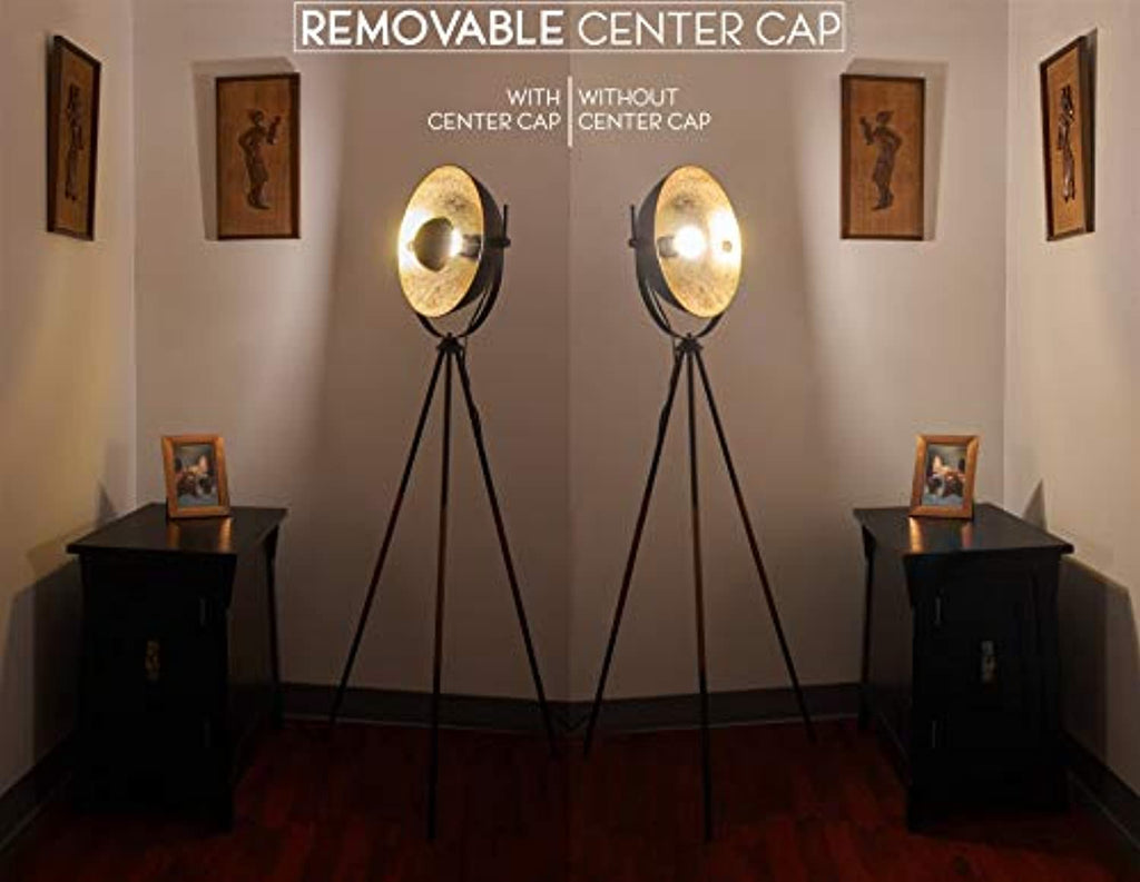 VINTAGE VIBE: Standing lamp features a rotating shade with inner crackled gold finish, legs accented by faux leather & quality stitching, and a removable front cap that allows more light to shine. A sure conversation piece, photos don't do it justice