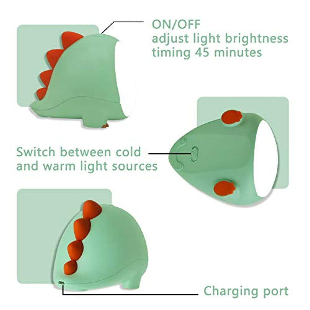 YOTOZU Dinosaur Lamp, Kids Night Light USB Rechargeable & Dimmable Dinosaur Night Light 45 Minutes Timer to Sleep for Kids Baby Toddler Children Christmas Gifts(Green)