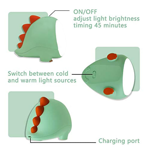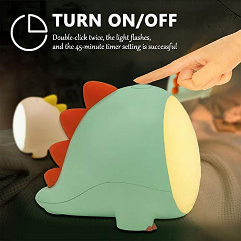 ⭐[45-MINUTE TIMER SETTING]: Quickly click the dinosaur night light button at the top twice, the indicator light will flash once, and the 45-minute auto-off calculator is successfully set.After 45 minutes, When your child enters deep sleep, the dinosaur light will automatically turn off.