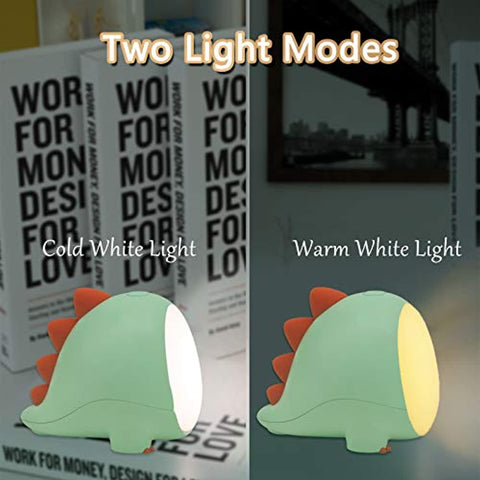 ⭐[TWO LIGHT MODES]: The button at the bottom of the dinosaur lamp can switch between warm yellow light and white light. The warm yellow light creates a romantic and relaxing atmosphere in the bedroom and helps your child fall asleep faster. Natural white light disperses the darkness and illuminates the room. At the same time, long press the top button to adjust the brightness of the light, which is very convenient.